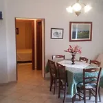 L'alloggio ospita una cucina completamente attrezzata con un microonde, un frigo e un forno.